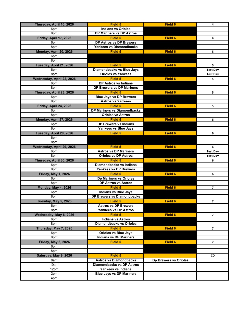14U Game Schedule