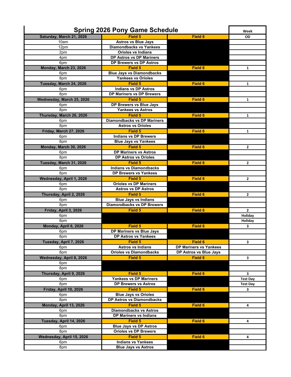 14U Game Schedule